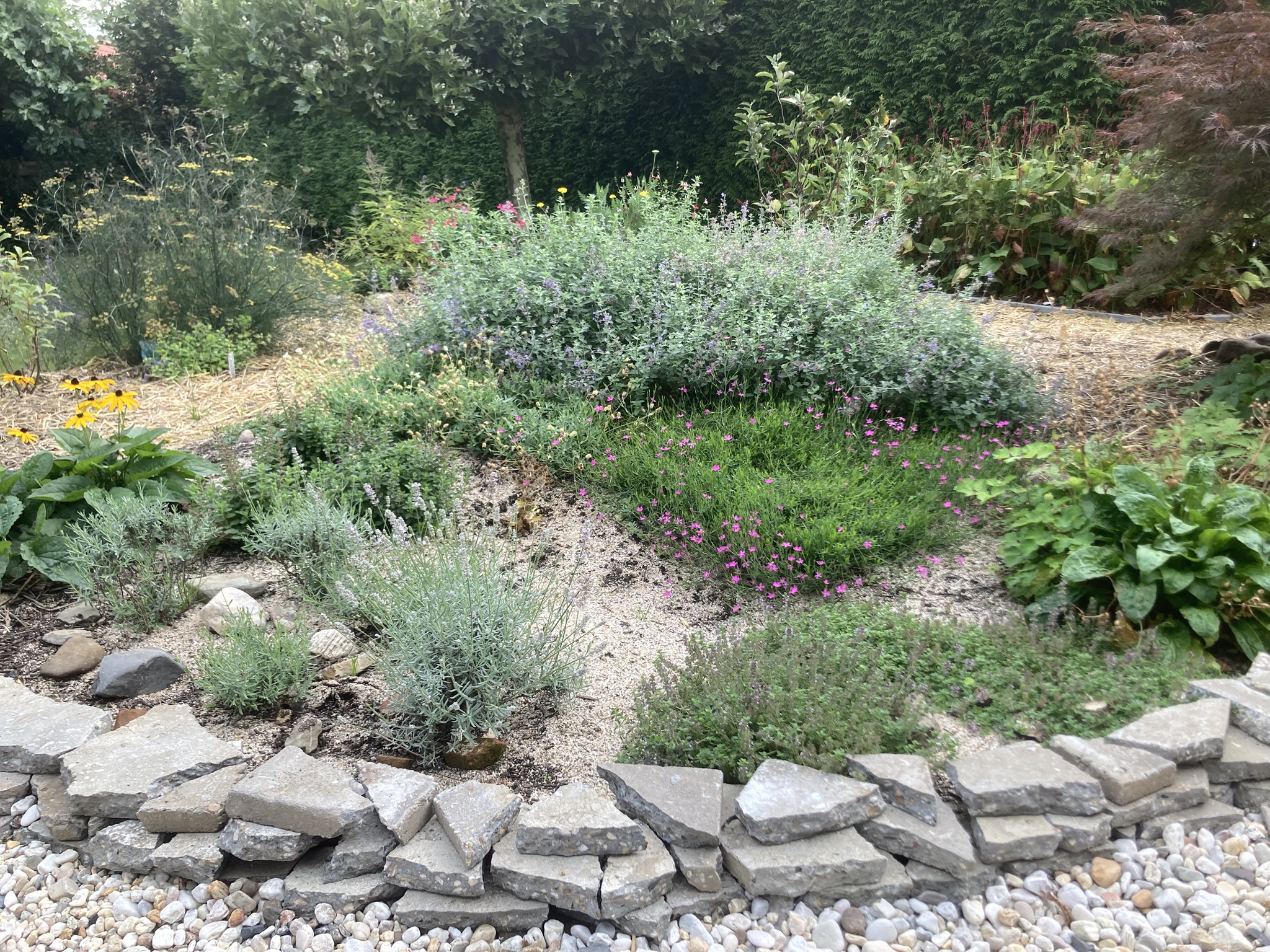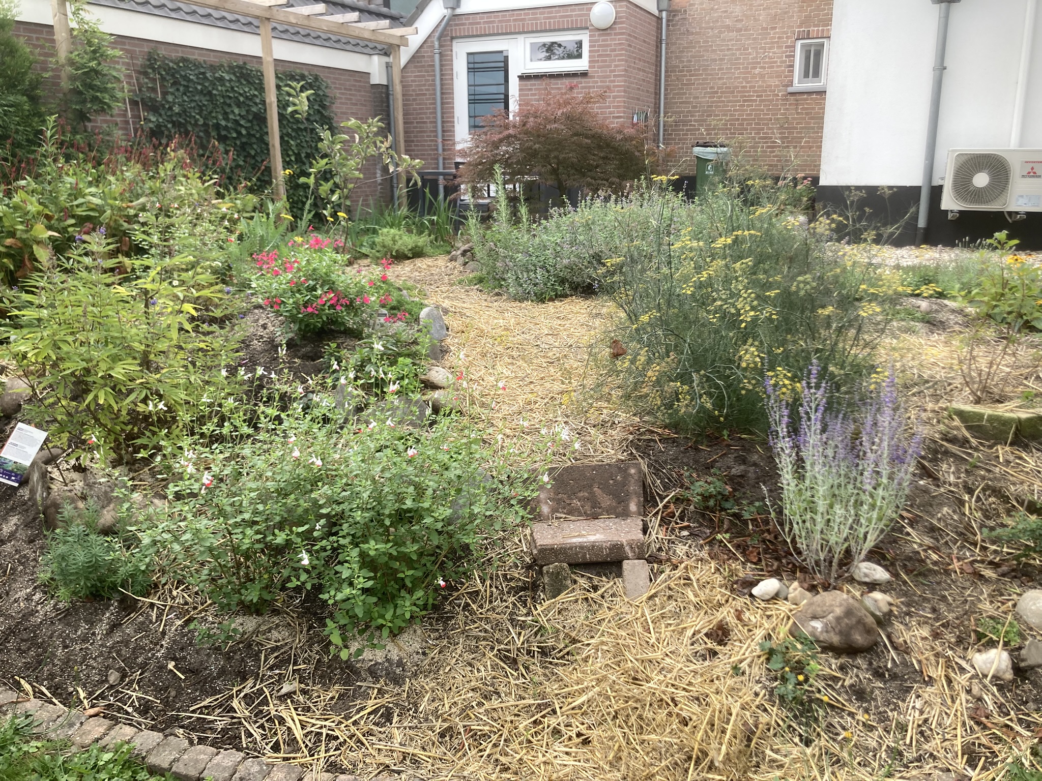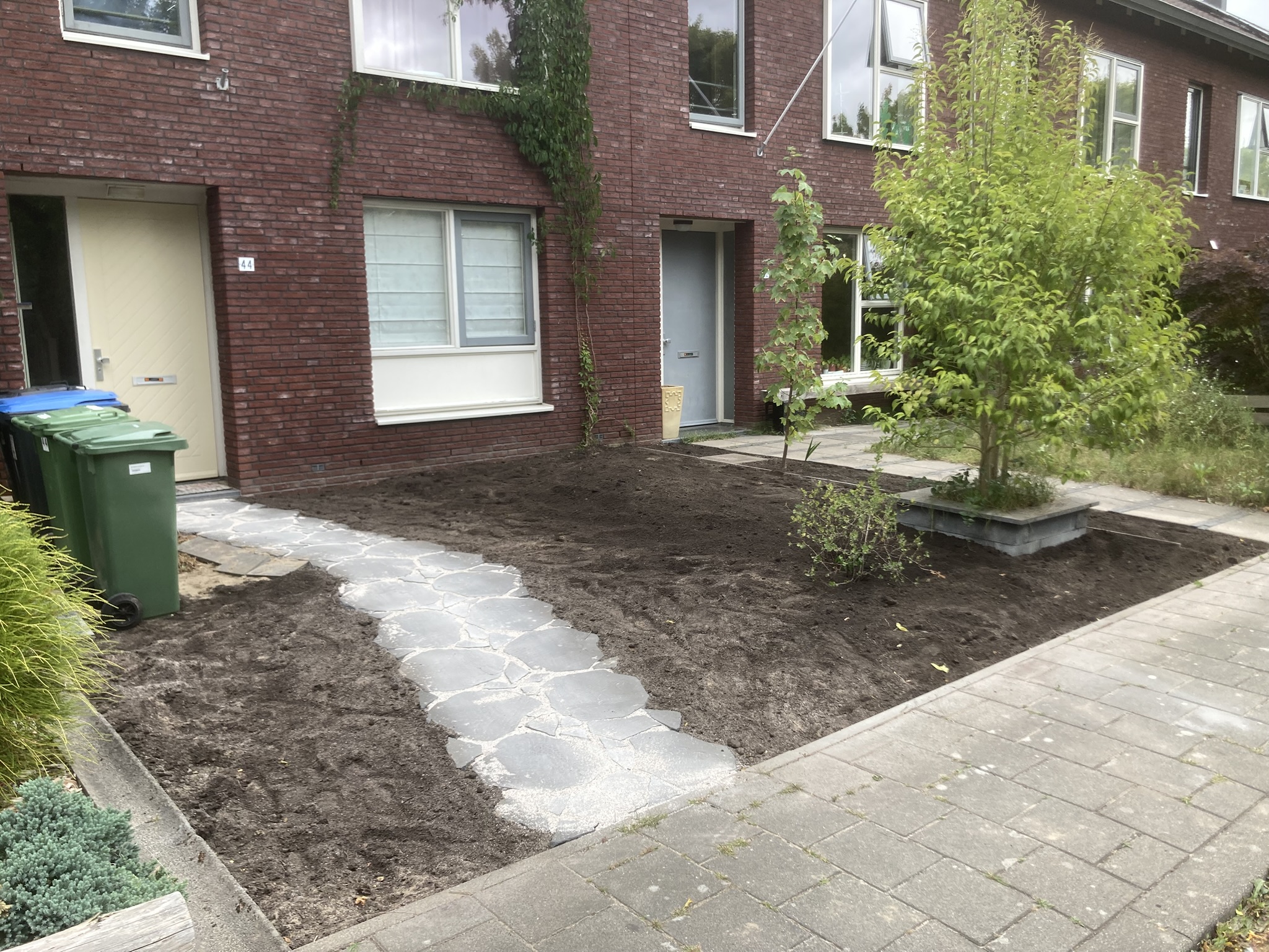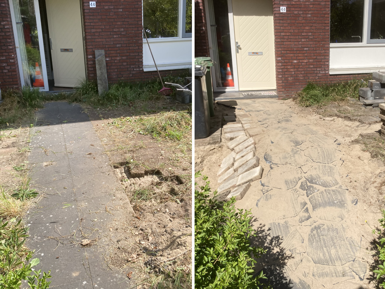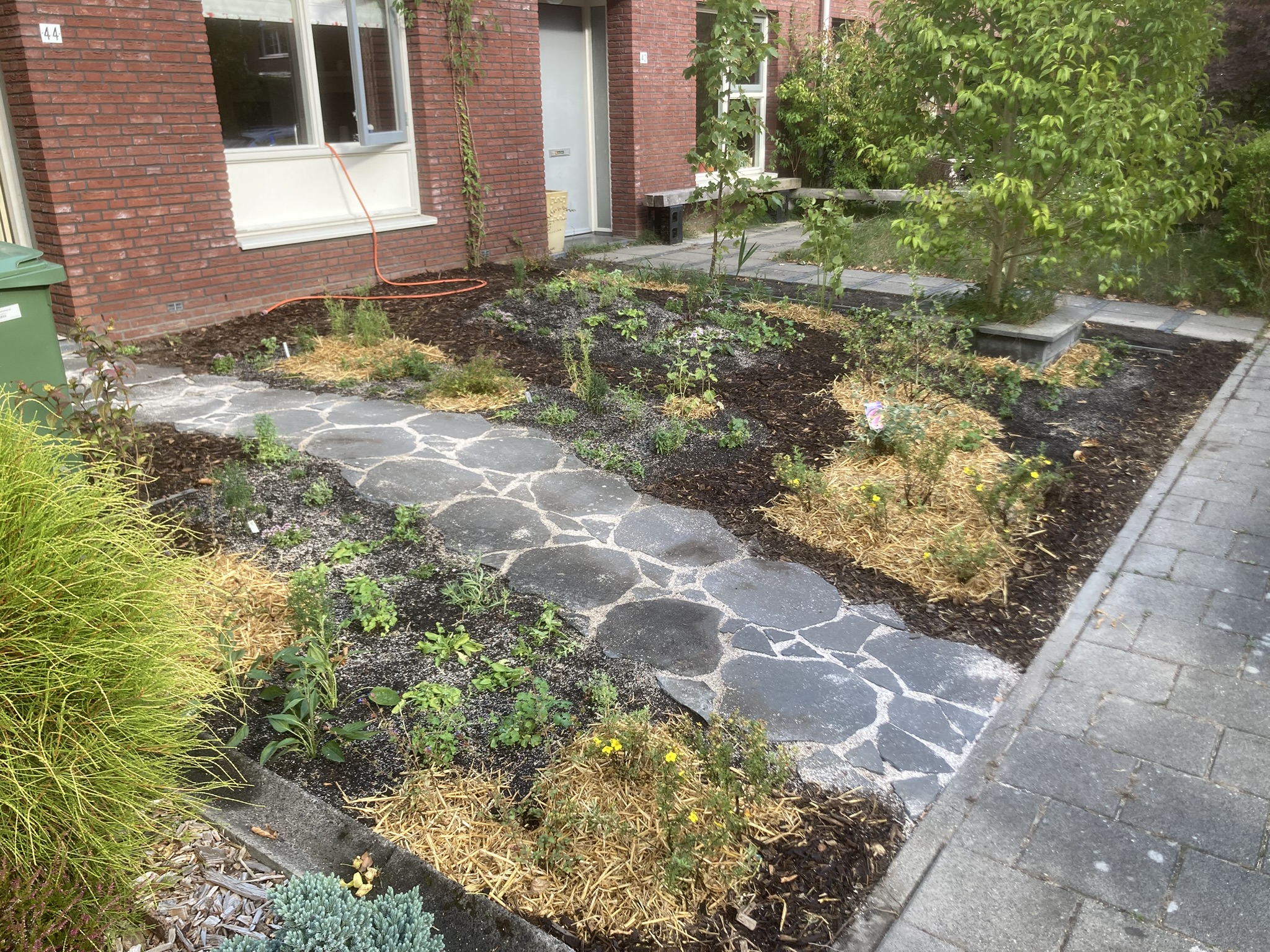 Enkele voorbeelden van hoe ik werk en wat ik maak. ontwikkeling volledig terras naar deels tuinVormgeving en grondverbetering in ontwikkelingklein projectje van bar en boos naar groen en weelderigdit was een plat kaal stuk grondnu een dynamisch zonbestendige rotstuinverwaarloosde tuin na 2 maanden aanleggeen strakke lijnenhergebruik van begraven stenenzonborder al aardig vol. snoeiafval in de tuinverwerkenvergrasde tuin compleet opnieuw aangelegdpaden van stropad hergebruiken tot flagstones (lichte glooiing)Stenen en zand eruit en compost erinDynamiek aanbrengen en beplantenzonminnende planten op een zonnige plek